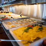 ארוחת הבוקר מוגשת במסעדה.